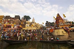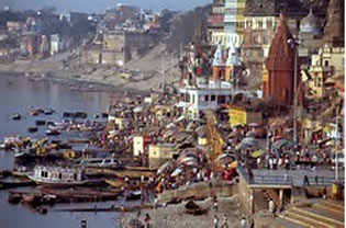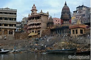 The photographs below showcase the buildings and temples that line the Ganga river in Varanasi, the holiest center of pilgrimage for the Hindus. Varanasi has another distinction; it is the oldest, continuously inhabited town in the world. It is visited by millions of Hindu devotees yearly from all over India and the Hindus from abroad. After the Varanasi pictures, we travel across India to cover other Hindu temples that are of interest from architectural view point.