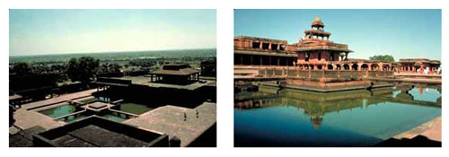 This “peerless pool” was a beautiful man-made pool in the “Royal Complex” of Fateh Pur Sikri. As shown in the accompanying figures, a central platform was connected to four corners of the pool by four causeways.