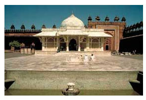 The main attraction in the courtyard leading to the Jami Masjid is this tomb. This exquisitely sculpted structure is made in white marble and surpasses all other marble mausoleums in India in grandeur and in finesse. Even more striking are the mother-of-pearl inlays of intricate patterns on ebony that adorn the walls of the grave.