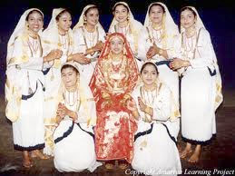 This is a popular style of dance of the Muslims, the Maappila community, throughout the state of Kerala, mostly performed by women during wedding celebrations. The bride dressed up in bright, glittering costumes, with her feet colored with henna and with gold ornaments sits on a pedestal and the dancers sing and perform around her. There is singing and clapping as the dancers entertain and tease the bride, to the accompaniment of harmonium, Tabla and Elathalam. It is the usual custom to sing only Muslim songs, 'maappila pattu'. Rarely men perform Oppana around the bridegroom. The word 'Oppana' may have derived from Arabic origin, but it is a very popular style, seen in movies and as a competitive item in Youth Festivals.