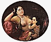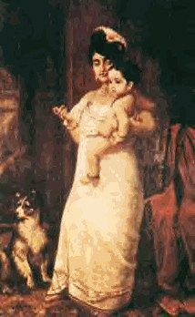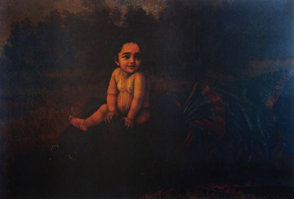iii) “Breast feeding”: A rare semi-nude by Ravi Varma. While technically the painting cannot be faulted , absent is the mother’s expression of maternal affection. A somewhat nonchalant attitude of the mother is rather surprising.