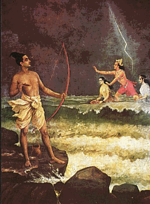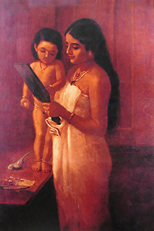 I was brought up with images of the gods and goddesses of Hindu mythology and never once stopped to think that those images had not existed until the artistic genius of Raja Ravi Varma! He had the vision and talent to render on canvas, realistic, human-like images of the deities. Ravi Varma was also the first serious Indian painter to use oil as his medium and to use live models to create some of the scenes in his pictures. Another departure from the norm (from Indian painters) is his style; many of his paintings are quite similar to those of the Grand Masters from Italy or Holland. And the quality rivals the best of them!