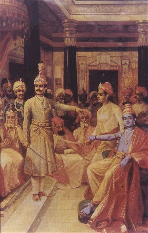 It is in these paintings Ravi Varma’s grandeur becomes obvious. Perfectly proportioned men and women set against elaborate background rival any painting by the Italian or Dutch masters. I will present the following, in order, without critiquing any of them individually: