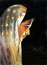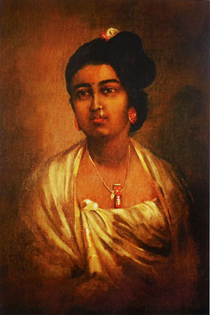 In general, the portraits of Ravi Varma evoke images of Rembrandt’s paintings. The dark background, the subdued light playing on the subject’s face, the masterly treatment of the ornaments and clothing all are quite similar. Some of the examples are: